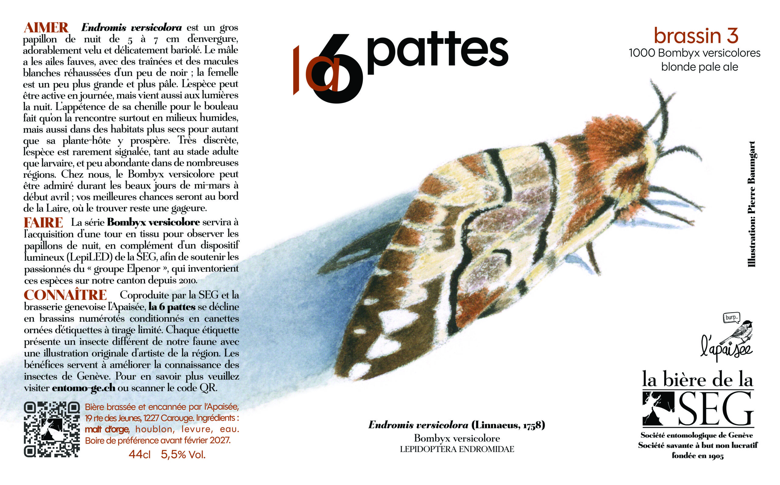 Endromis versicolora est un gros papillon de nuit de 5 à 7 cm d’envergure, adorablement velu et délicatement bariolé. Le mâle a les ailes fauves, avec des traînées et des macules blanches réhaussées d’un peu de noir ; la femelle est un peu plus grande et plus pâle. L’espèce peut être active en journée, mais vient aussi aux lumières la nuit. L’appétence de sa chenille pour le bouleau fait qu’on la rencontre surtout en milieux humides, mais aussi dans des habitats plus secs pour autant que sa plante-hôte y prospère. Très discrète, l’espèce est rarement signalée, tant au stade adulte que larvaire, et peu abondante dans de nombreuses régions. Chez nous, le Bombyx versicolore peut être admiré durant les beaux jours de mi-mars à début avril ; vos meilleures chances seront au bord de la Laire, où le trouver reste une gageure.